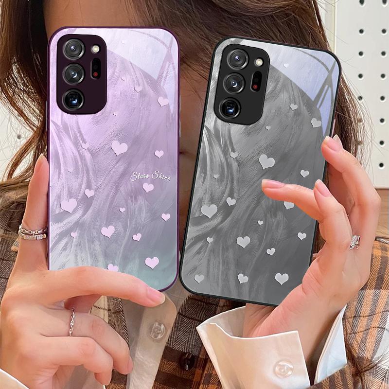 Gradient Love White For Samsung Galaxy Note 8 9 10 PRO 20 Ultra A01 02 03 Core 04E 4G 12 13 5G Tempering Glass Phone Case