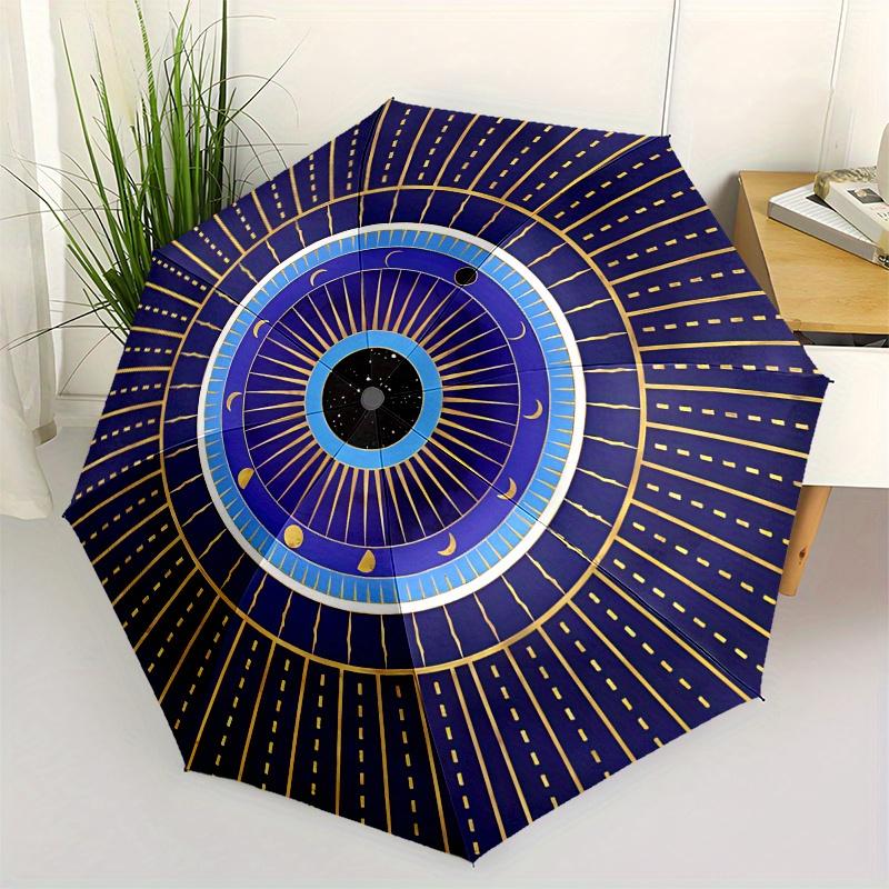Elegant Blue and Gold Circular Modern Abstract Design Umbrella, Portable 3 Fold Compact Umbrella for Men & Women,S91