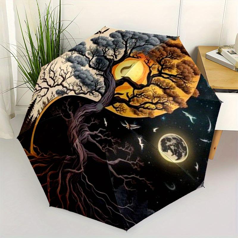 Drzewo Życia Yin Yang Faza Księżyca Plakat do Druku na Ścianę Parasol, Przenośny Kompaktowy Parasol Składany na 3 Części dla Mężczyzn i Kobiet,S96