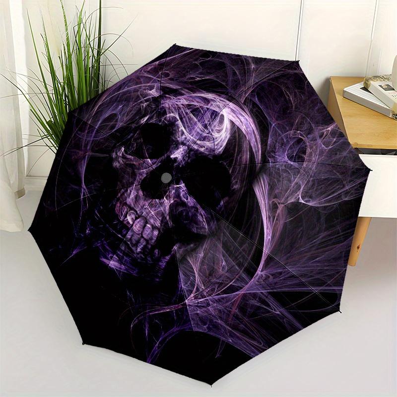 Purple Skull Fractal Art Print Unique Wall Decor for Your Home or Office Umbrella, Portable 3 Fold Compact Umbrella for Men & Women,S288