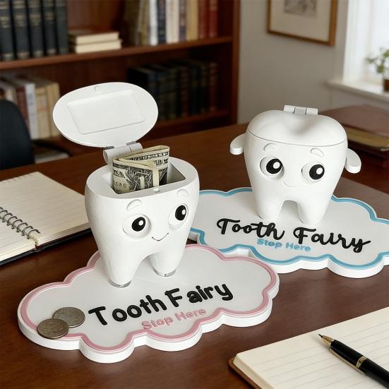 Kształt i design przyjazne dzieciom: Dzięki uroczemu kształtowi zęba połączonemu z sympatyczną mimiką, to pudełko trafia prosto w gusta dzieci.. Zabawny design przekształca proces wymiany zębów w zabawne i rytualne wydarzenie, ułatwiając dzieciom pozytywne zaangażowanie w kamienie milowe związane z zębami.
