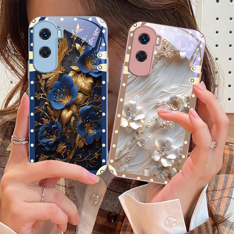 Pudełko Różowe Kwiaty Dla Honor 200 90 8X 9X Pro Lite P50 P40 Nova 10 11i P60 Magic4 6 Mate 20 50 Szkło Hartowane Etui na Telefon
