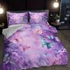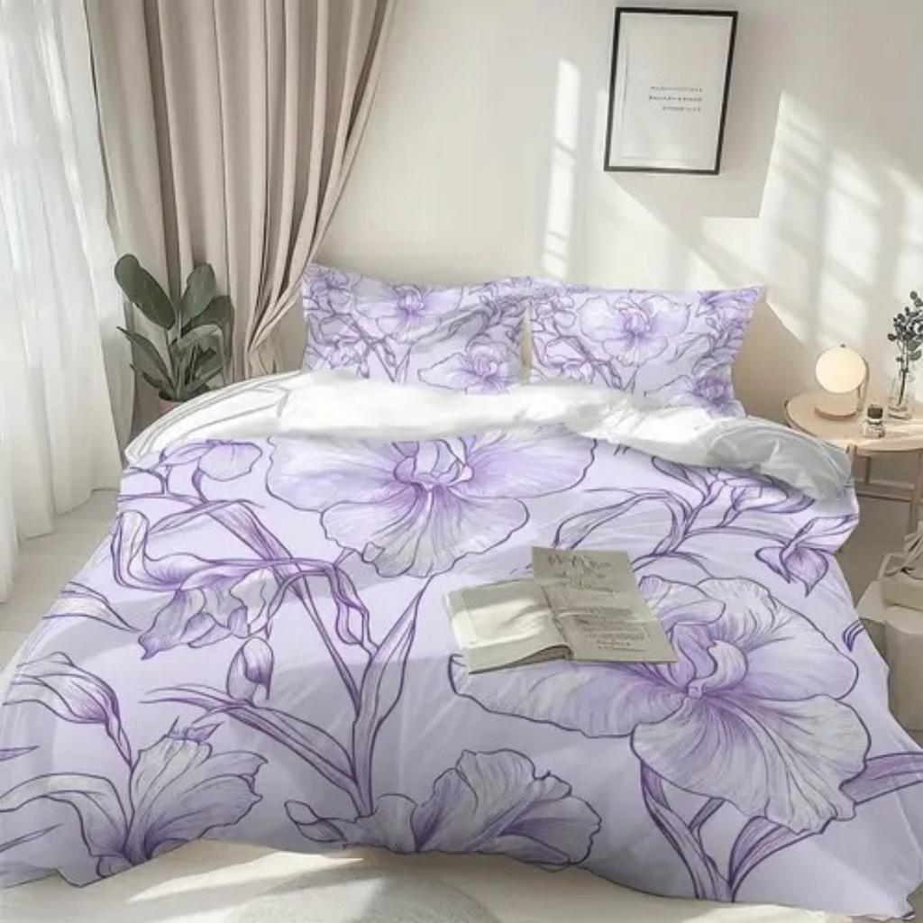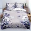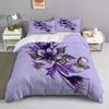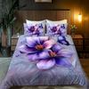 Luksusowa poszewka na kołdrę z fioletowym wzorem kwiatowym, rozmiar Queen King, drukowana cyfrowo 3D, pościel, miękka i wygodna, zestaw 3-częściowy
