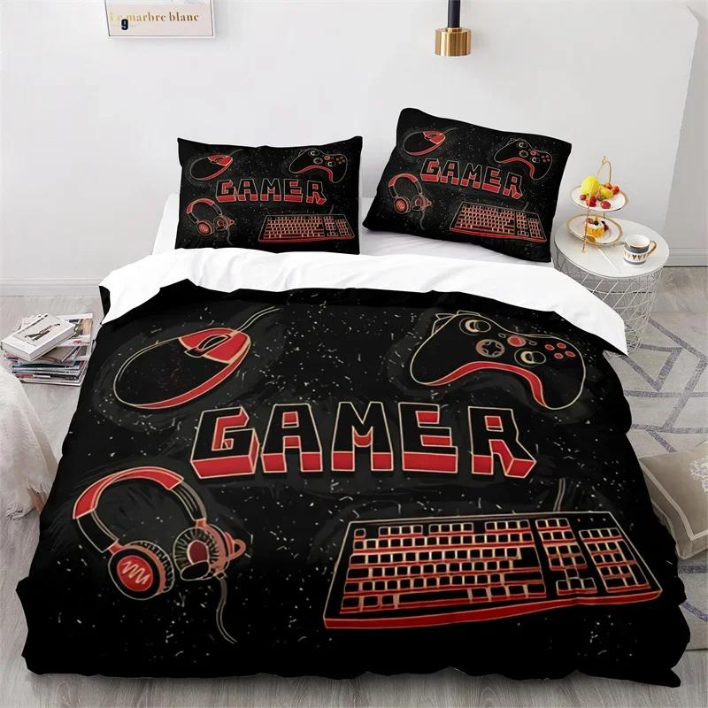 Gaming Full Queen Duvet Cover Polyester Gamepad Bedding Set Video Game Controller Comforter Cover For Boys Teen Game Room Decor