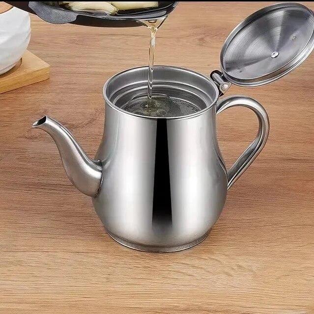 1Pc Household Stainless Steel Oil Pot with Filter Oil Filter Pot Stainless Steel Cooking Oil Storage Pot Kitchen Gadget