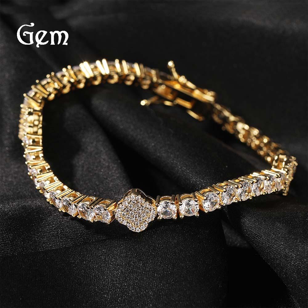 Modna miedziana bransoletka z cyrkoniami i pełnym diamentem w kształcie czterolistnej koniczyny, łańcuszek tenisowy, lekki luksus, wszechstronny naszyjnik dla par