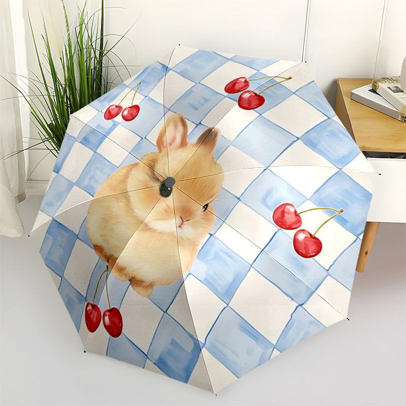 1pc Cherry BunnyAutomatic Open/close Folding Umbrella, Compact Portable Travel Umbrella, Perfect Birthday/Holiday, Cute Umbrella y027