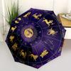Golden Serpent Zodiac Wheel: Mystical Astrological Decor Umbrella, Portable 3-Fold Compact Umbrella for Men & Women R159