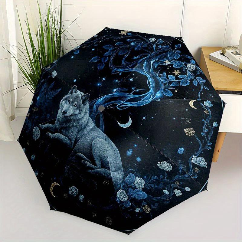 Enchanted Night Wolf Wall Art: Mystical Moonlit Decor for Your Home Umbrella, Portable 3-Fold Compact Umbrella for Men & Women R139