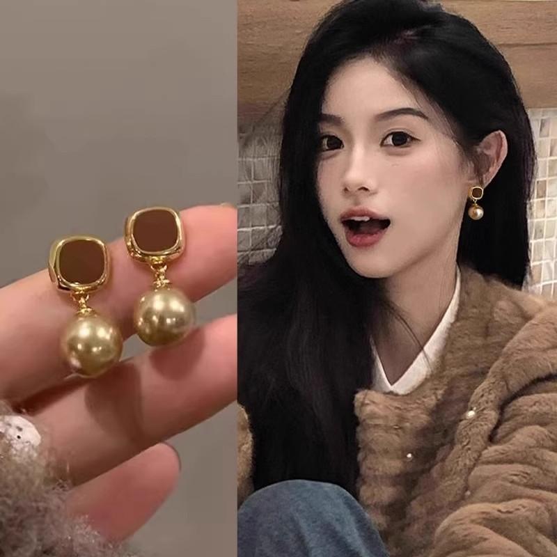 French champagne brown pearl stud earrings femininity versatile high-end small fragrant earrings autumn and winter new ear jewelry