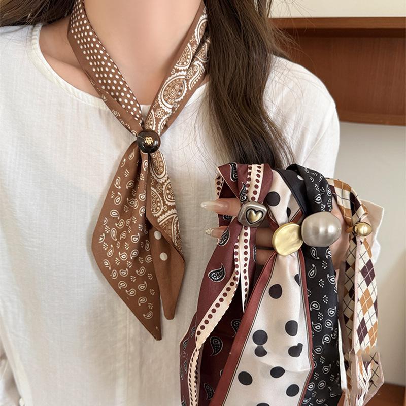 Ethnic style fabric cashew flower rhombus love round silk scarf necklace retro collarbone chain niche neck chain