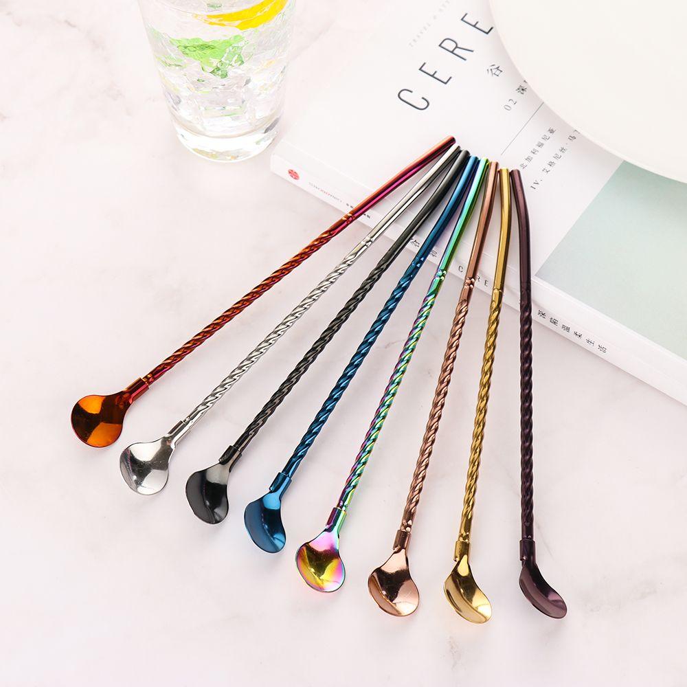 Home Metal Bent Filter Reusable Coffee Spoons Stainless Steel Drinking Straw Straws Spoon