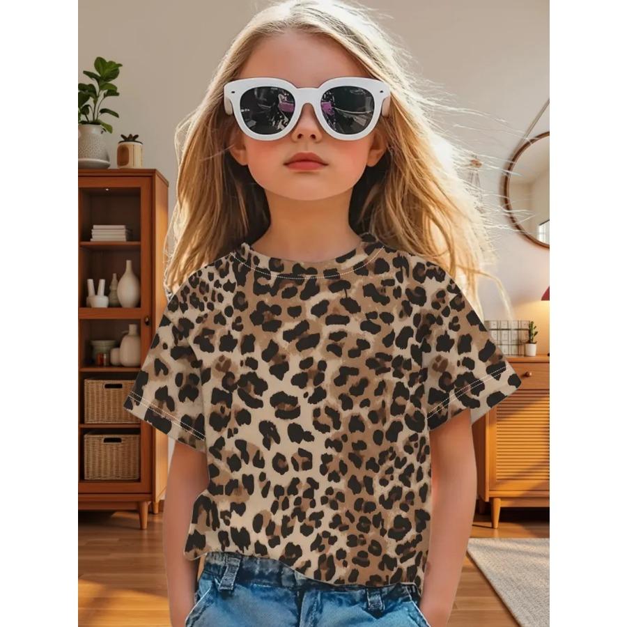 T-shirty w krowie wzory dla dziewczynek Codzienne ubrania dla dziewczynek 7-8 lat Góry z krótkim rękawem Na zewnątrz Harajuku Okrągły dekolt Koszulki Dziecięca koszulka