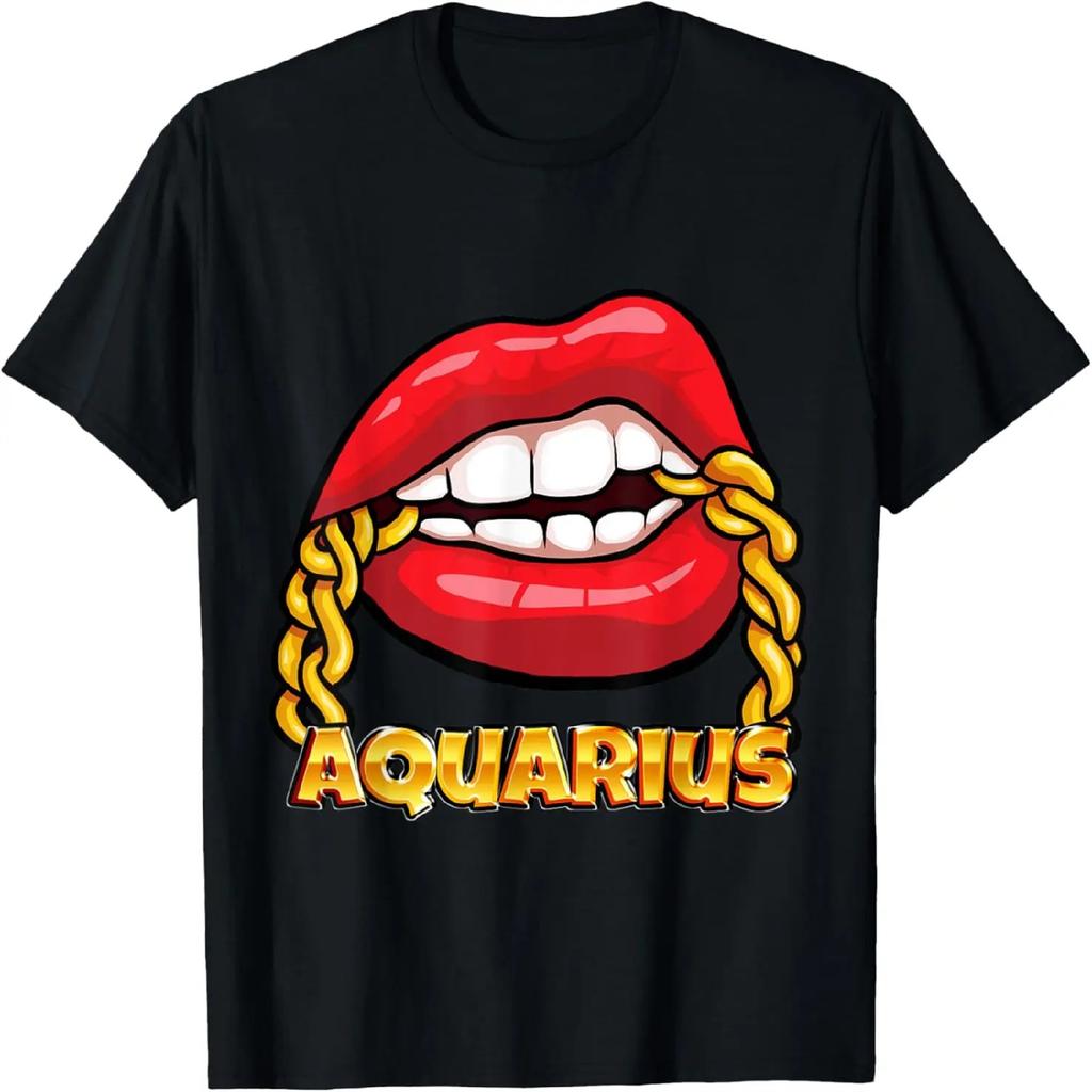 Juicy Lips Gold Chain Aquarius Zodiac Sign T-Shirt