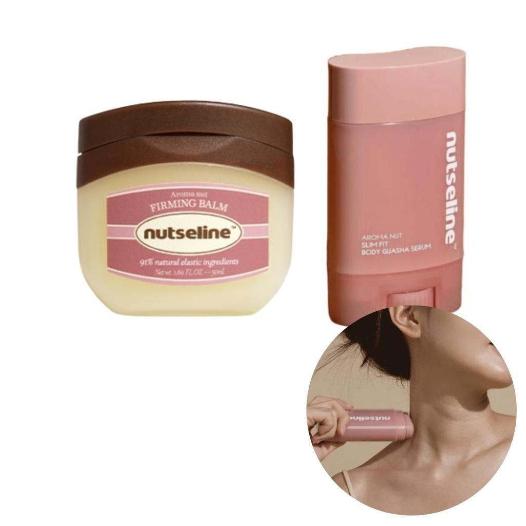 [Product Features] ✔ All-in-one body care set featuring a guasha applicator serum and a firming balm ✔ The serum includes an integrated applicator for easy massage and cellulite care ✔ The balm provides deep nutrition and elasticity with natural nut-derived oils ✔ Helps improve body lines, swelling, and skin elasticity ✔ Non-sticky, fast-absorbing formulas suitable for daily massage