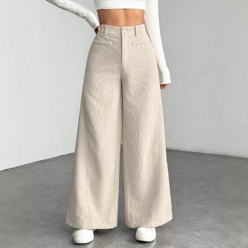 Europejskie Amerykańskie Jesień Zima Sztruksowe Codzienne Damskie Wysokiej Talii Luźne Modelujące Sylwetkę Szerokie Nogawki Spodnie