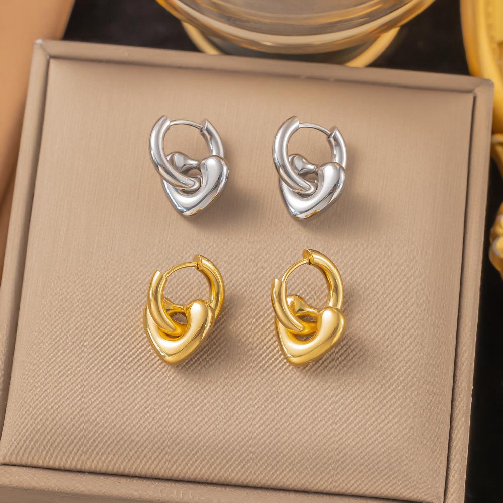 Stainless Steel Chic Heart Huggie Hoop Earrings Charm Gold Silver Color Tarnish Free Trendy Fashion for Women Bijoux
