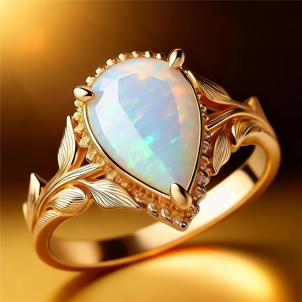 Białe Pierścionki z Kamieniem Opalu Ognistego w Kształcie Kropli Wody Dla Kobiet Kolor Złoty Zaręczynowe Ślubne