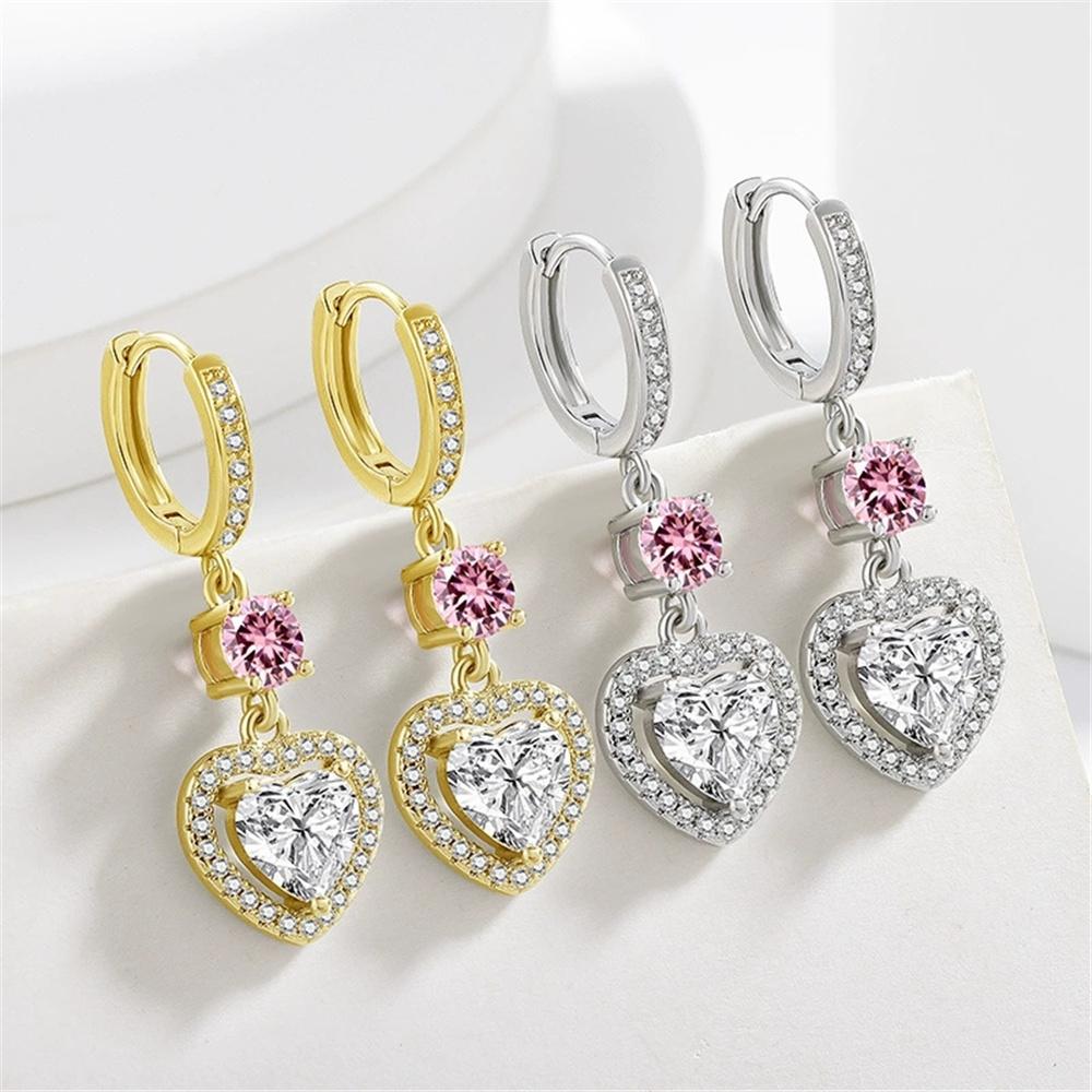 Urocze Damskie Kolczyki Koła z Białą Cyrkonią w Kształcie Serca Vintage Moda Kolor Złoty Ślubne Dla Kobiet