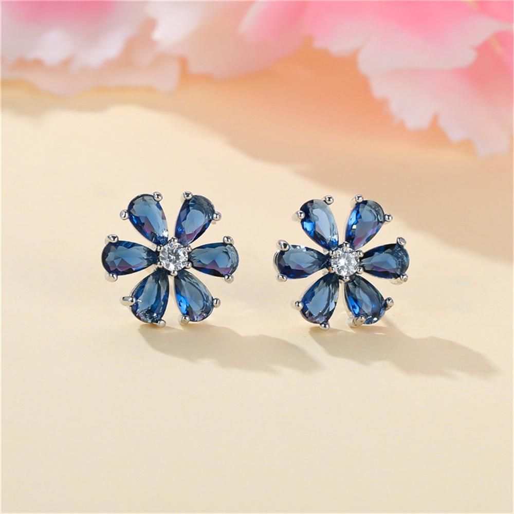 Luksusowe Damskie Białe Niebieskie Kwiatowe Kolczyki Sztyfty z Kamieniami Cyrkonowymi Unikalne Srebrny Kolor Ślubne Dla Kobiet