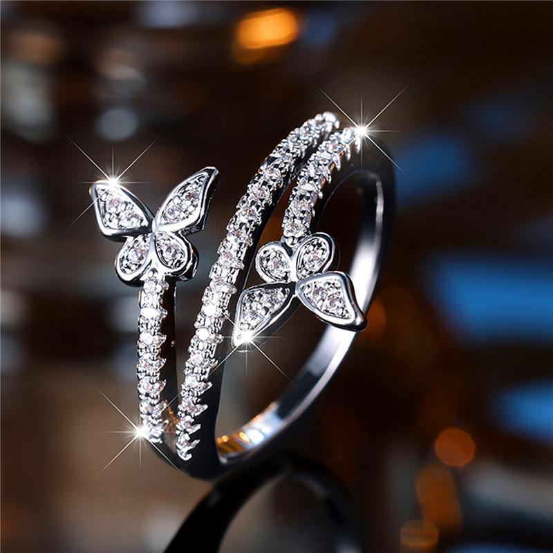 Luxury Female Small White Zircon Stone Butterfly Engagement Ring Trendy Silver Color Bride Wedding Gift For Women