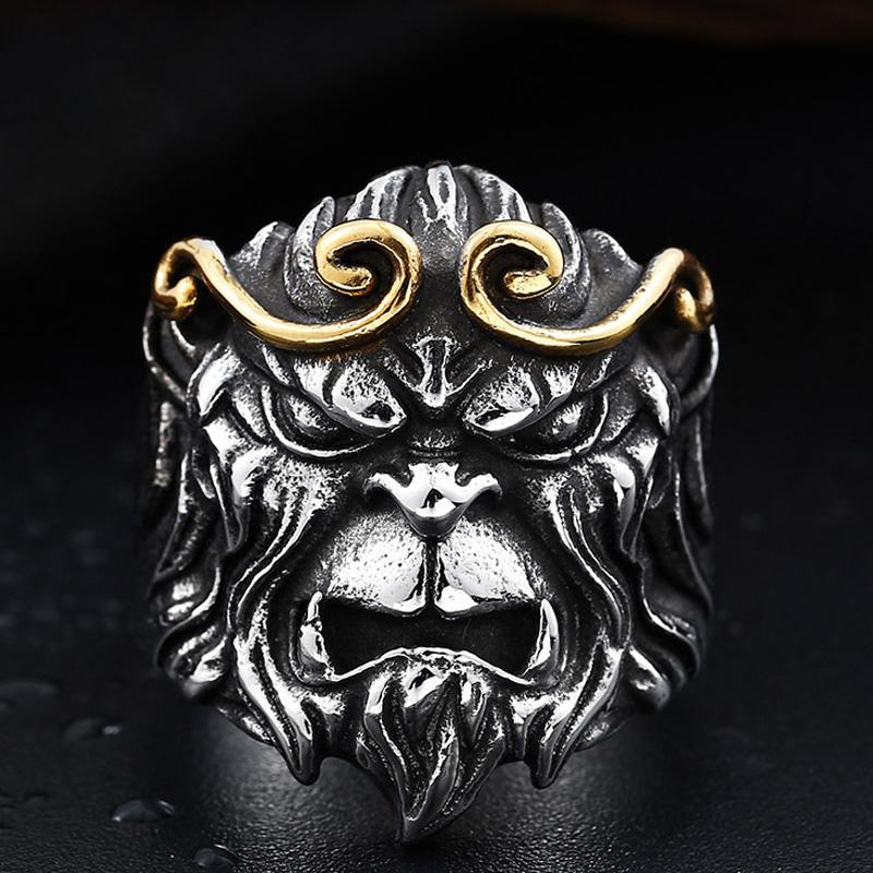 Retro Black Myth Wukong Ring For Men Punk Gothic Large Adjustable Ring Journey To The West Monkey King Accessories Gift