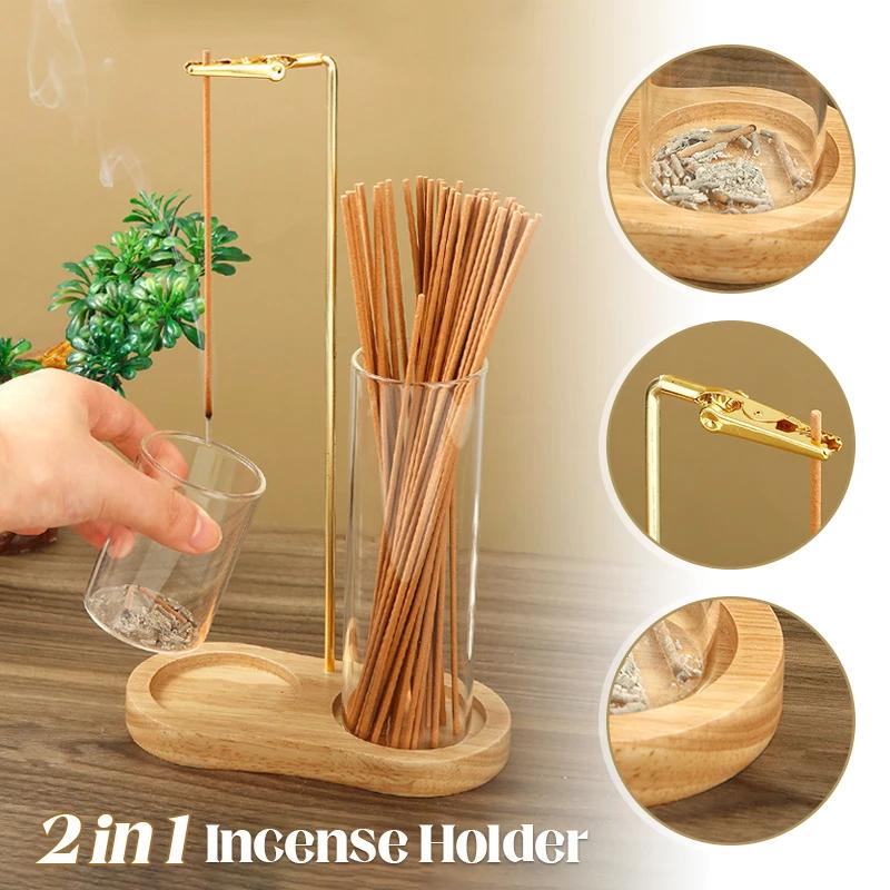 2 w 1 uchwyt na kadzidełka, antypopiołowy latający palnik na kadzidełka z wyjmowanym szklanym łapaczem popiołu i organizerem na kadzidełka