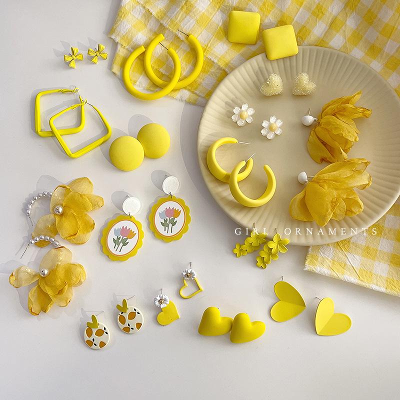 Żółte Świeże Kwiatowe Kolczyki Koła z Motylem dla Kobiet - Proste, Wszechstronne i Modne Geometryczne Wzornictwo.