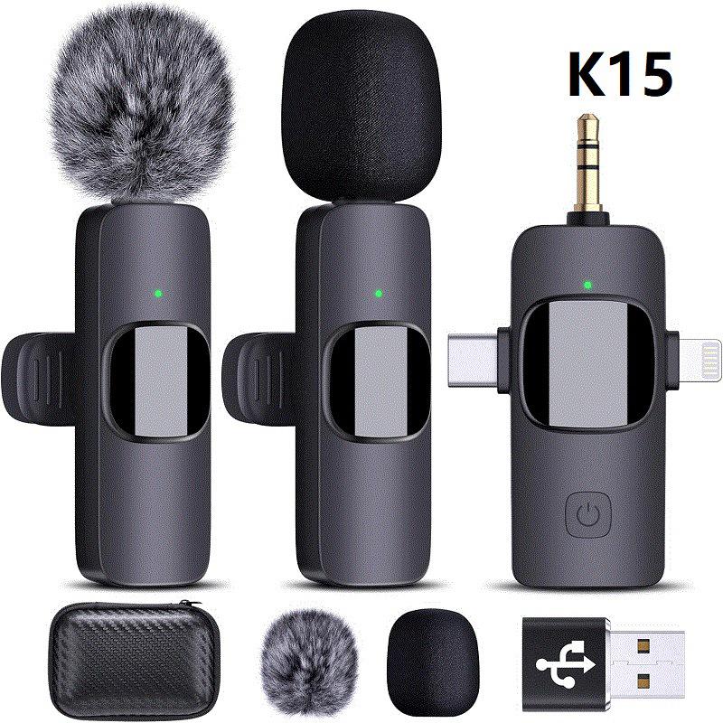 K15 Wireless Lavalier Microphone - 3-in-1 Noise Reduction Mic for Android, Video, Live Streaming (3.5mm)