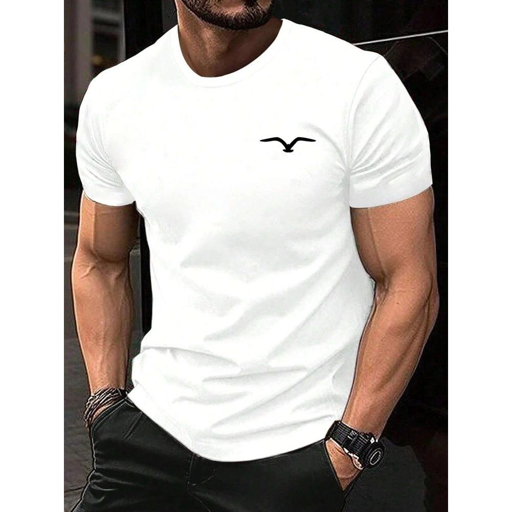Męska koszulka z krótkim rękawem i okrągłym dekoltem, bawełniana, wygodna, z nadrukiem, dla mężczyzny