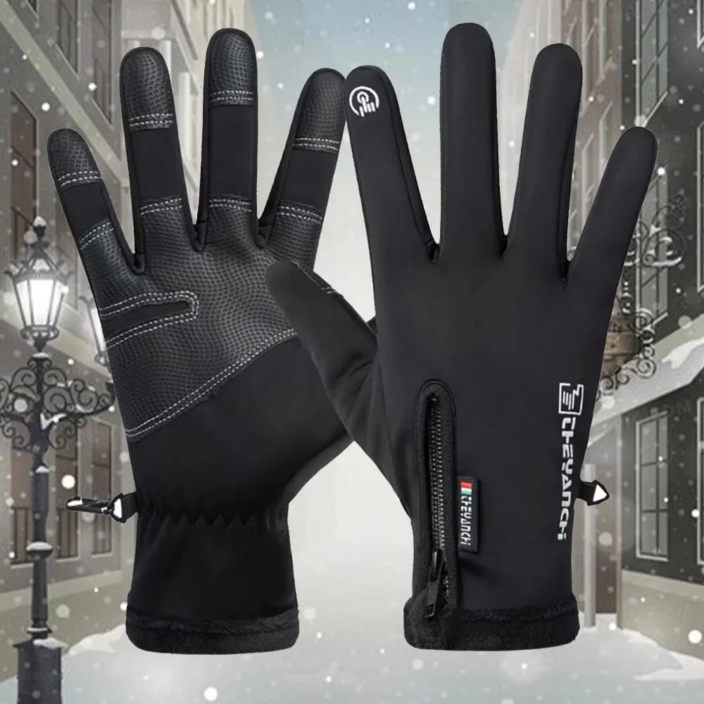 Motorcycle Gloves Winter Thermal Fleece Lined Winterhermal Skin-Friendly Cycling Waterproof Antislip Touch Screen Warm Ski Glove