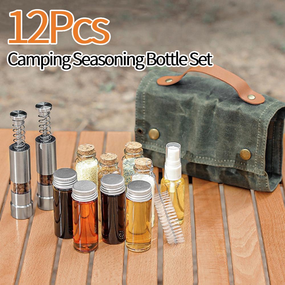 12 sztuk przenośny zestaw butelek na przyprawy kempingowe butelka na przyprawy zestaw torba do przechowywania torba na przyprawy do grilla butelka słoik na przyprawy na piknik na świeżym powietrzu