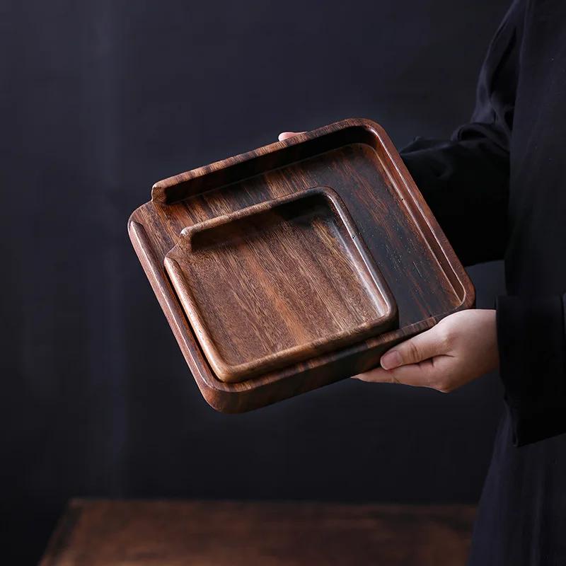 Drewniana Skrzynka na Herbatę z Orzecha Włoskiego Przechowywanie Akcesoriów do Zestawu Herbacianego Przechowywanie Przekąsek Drewniana Taca