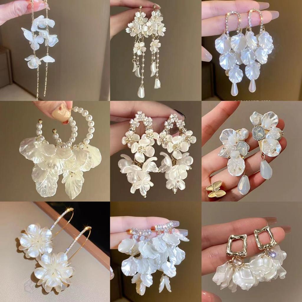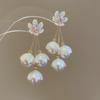 Diamond-set pearl petals fringed earrings stud earrings temperament fashionable and versatile design earrings