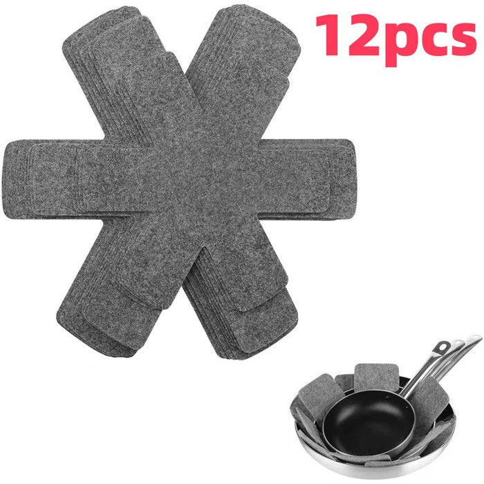 Lot de 12 protège-casseroles (3 tailles) -Protections pour ustensiles de cuisine-Protège et sépare les casseroles et poêles -Gris