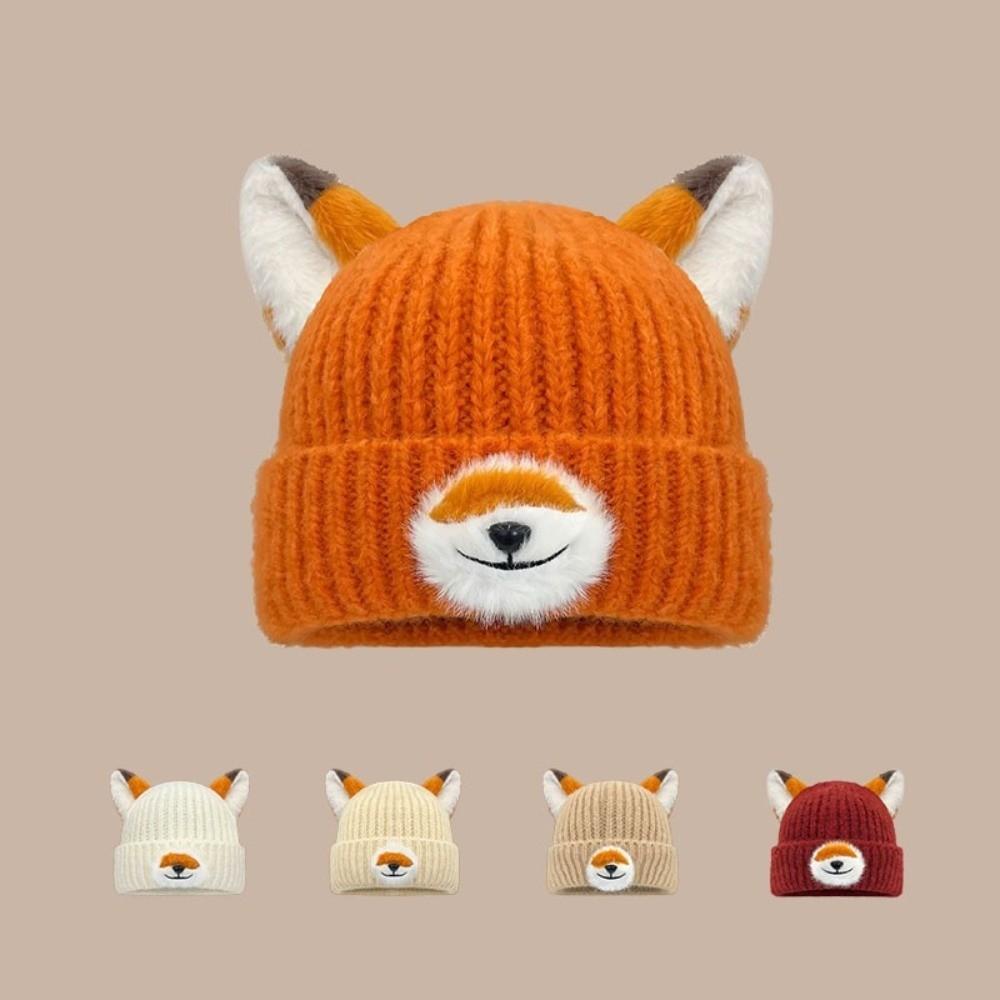 Cartoon Design Pullover Hats Thickened Winter Beanies Y2K Fox Ears Beanies for Women and Men