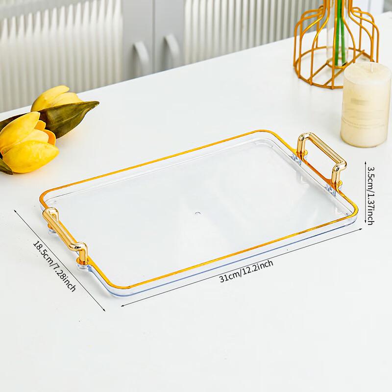 Rectangular Transparent Gold-Rimmed Serving Trays