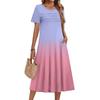 Ladies' Gradient Printed Casual And Fashionable Short Sleeved Round Neck Dress