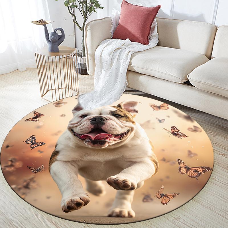 Bulldog pattern round rug,Carpet Rug for Living Room Bedroom Sofa Playroom Decor,Non-slip Floor Mat,Holiday Gifts and Birthday Gifts