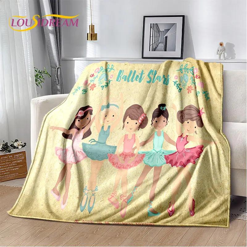 Cute Ballet Girl Ballerina Unicorn Cartoon Soft Plush Throw Blanket Cozy Flannel Blanket for Living Room Bedroom Sofa Picnic
