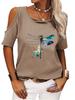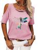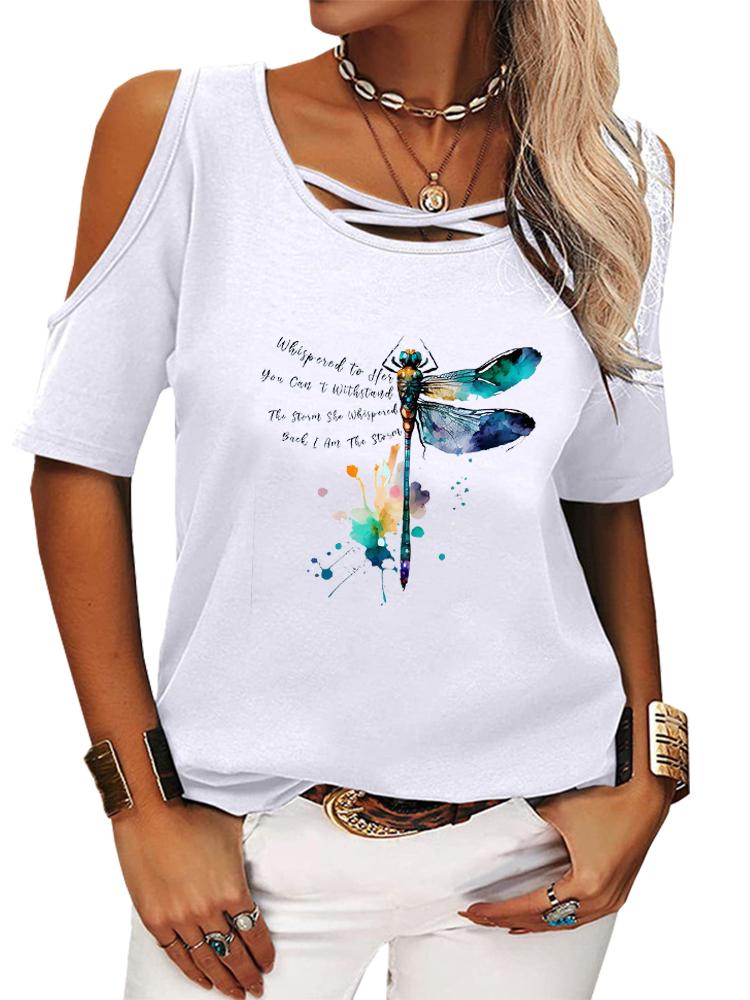 Damski Modny T-shirt z Krótkim Rękawem Casualowy Okrągły Dekolt Letnia Koszulka z Nadrukiem Top Odkryty z Ramion