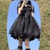 Sweet Short Sleeve Princess Stomach Cinching Puffy Mini Dress for Women Summer Style French Initial Short Skirt