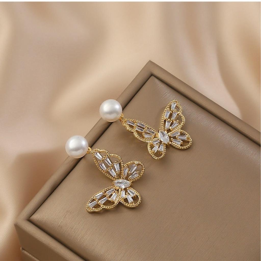 EH53-9 Hollow design butterfly earrings women's niche natural pearl stud earrings temperament versatile S925 silver needle