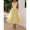 Damska jasnoróżowa sukienka bez rękawów z kwiatowym haftem i kokardą w pasie