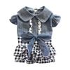 Summer Dogs Dress Pet Denim Plaid Dresses for Small Dogs Pomeranian Chihuahua Puppy Kitten Skirt Princess Dress Pet Clothing
