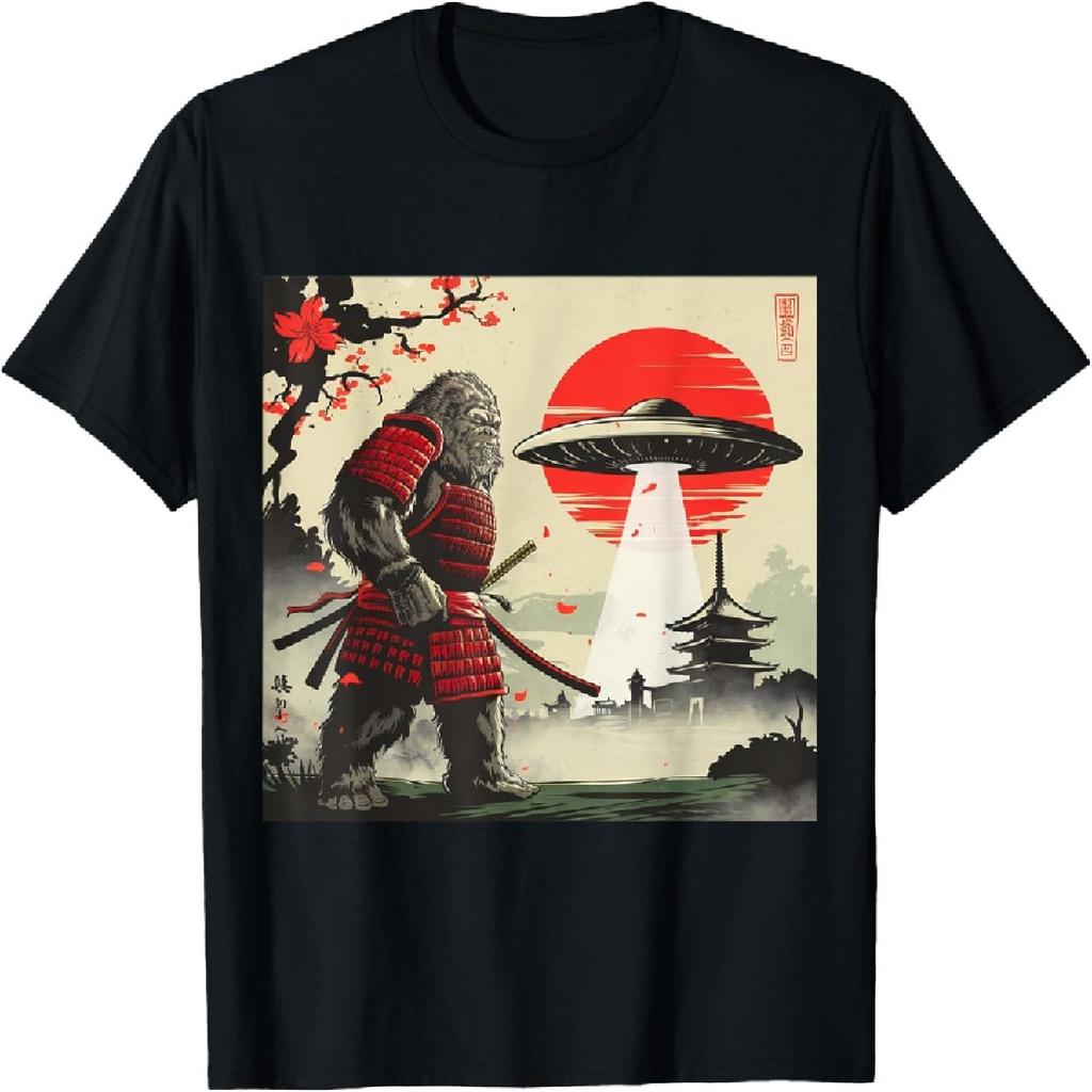 Samuraj Bigfoot Japoński UFO Vintage Grafika Sztuka Ukiyo-e Koszulka(2)