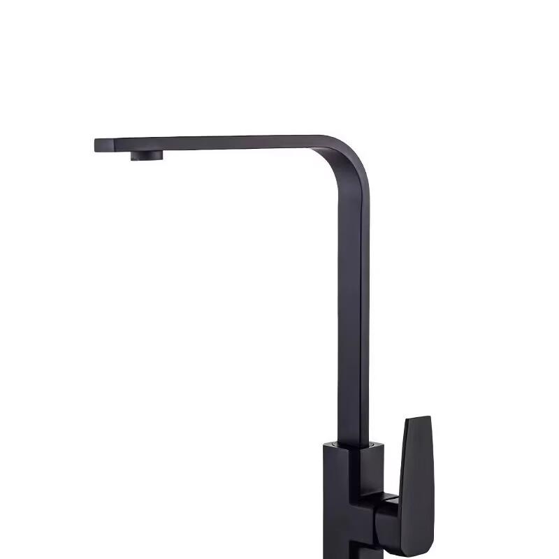 TLXT Matte Black Square Flat Tube Single Cold Kitchen Faucet