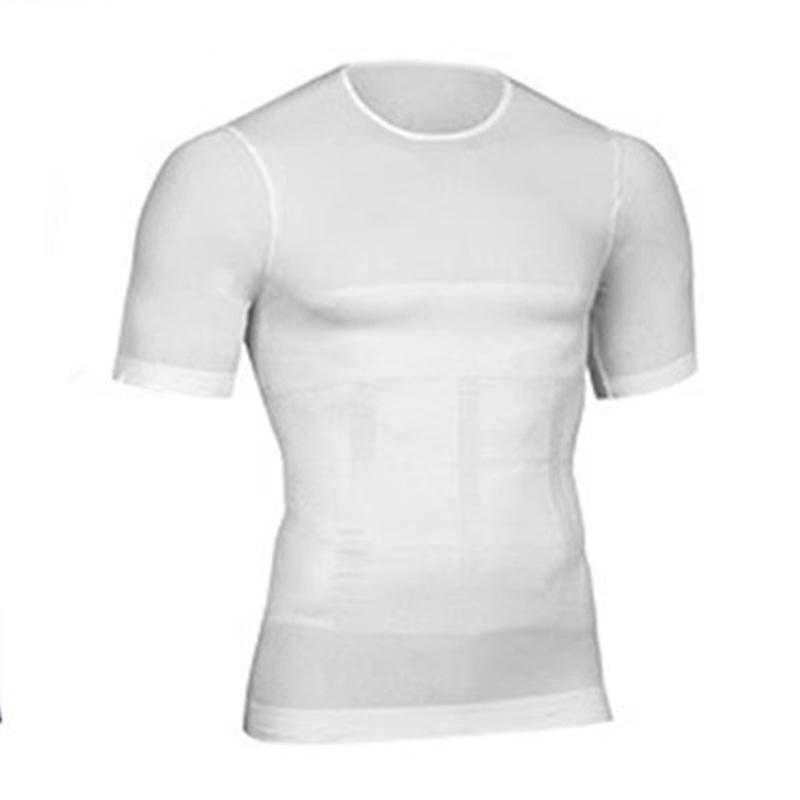 Men's Seamless Sculpting Chest Binder & Waist Trainer with Back Support, Short Sleeve, No-Trace Design in Black or White.