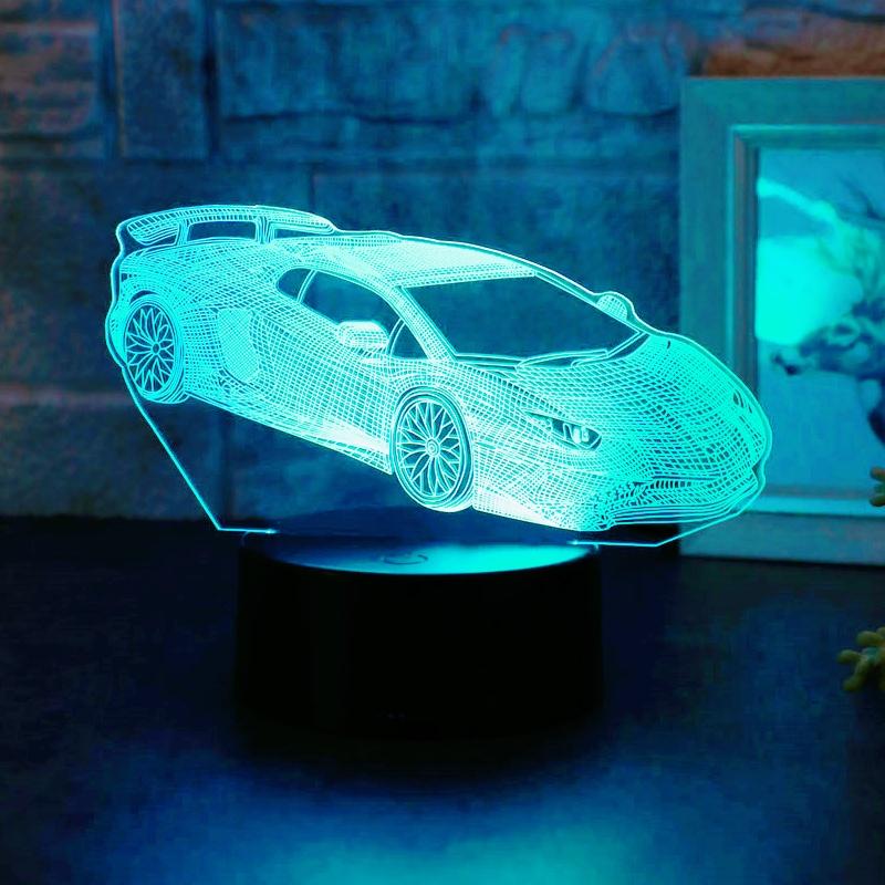 Cool Sports Car 3D Night Light Light Touch 7 Color Color Change Atmosphere Light is suitable for bedroom, bedside, living room,