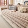 Thicken Plush Stripe Immitation Rabbit Fur Non-Slip Sofa Cover, for Winter Living Room Couch Seat Decor Slipcover Sofa Towel